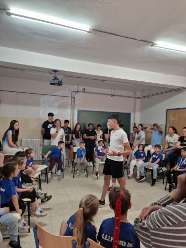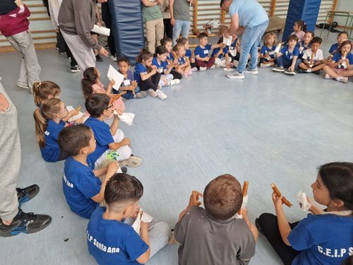 Hoy nos han acompañado en nuestra Semana Cultural alumnos y alumnas de Infantil y Primaria del CEIP Santa Ana que han participado en talleres de “Filosofía para Niños y Niñas” dinamizados por alumnado de 2º Bachillerato. Guiados por Sócrates, hemos ejercitado el pensamiento con juegos, conocido a filósofos y filósofas famosos, nos hemos planteado preguntas filosóficas “muy profundas” y hemos dialogado, a partir de un cuento, sobre los conflictos y cómo resolverlos. Para recuperar fuerzas después de tanta actividad hemos compartido un desayuno todos juntos. Hemos pasado un rato divertido y cordial en el que nuevamente se ha mostrado que la filosofía puede ser para todos y todas. Estamos muy agradecidos a la comunidad del CEIP Santa Ana por su participación y al alumnado de nuestro centro por su colaboración
